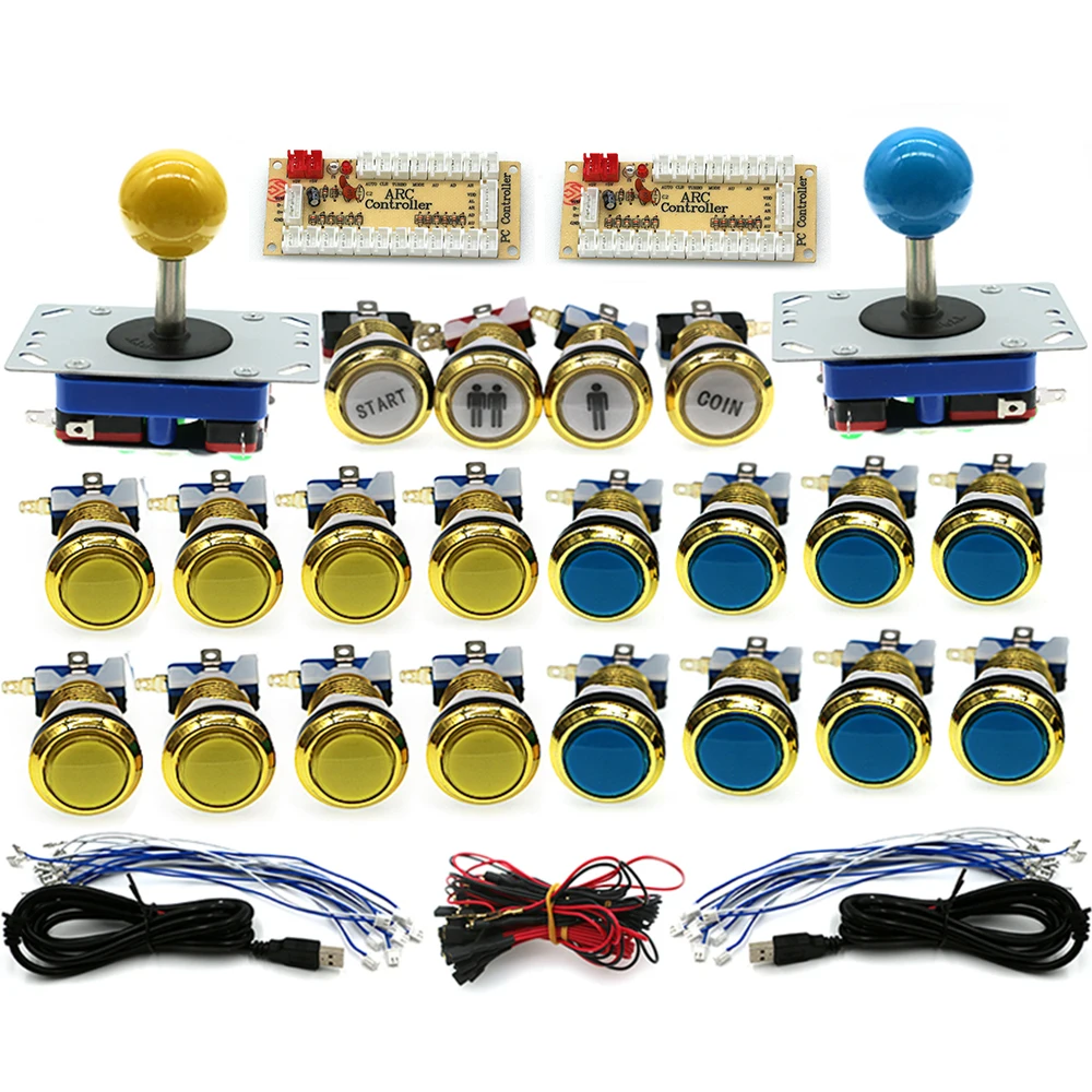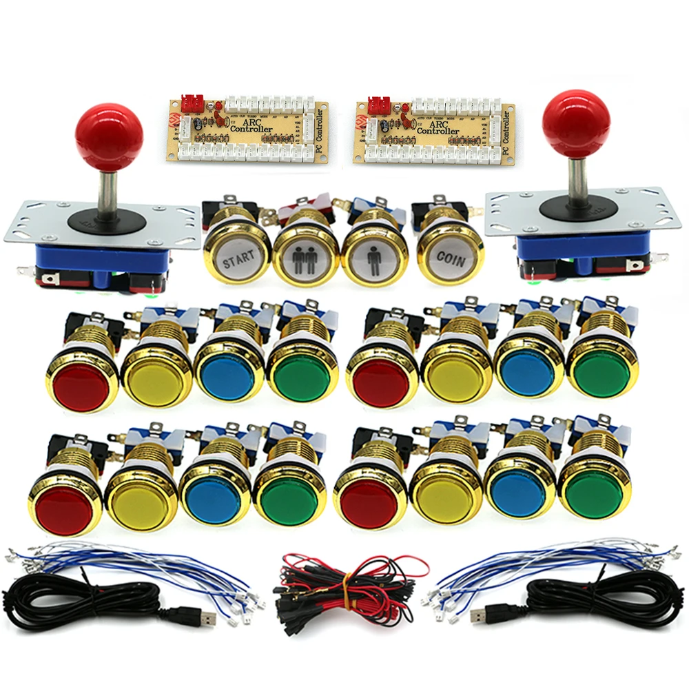 Аркадный Игровой контроллер, набор сделай сам, 5 В, хромированная, Золотая кнопка, короткий джойстик Zippy с нулевой задержкой, Raspberry Pi PC, USB-плата