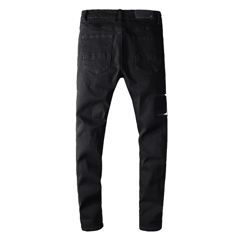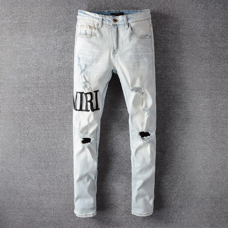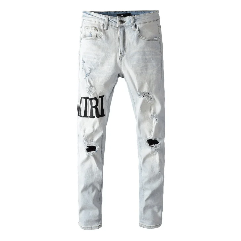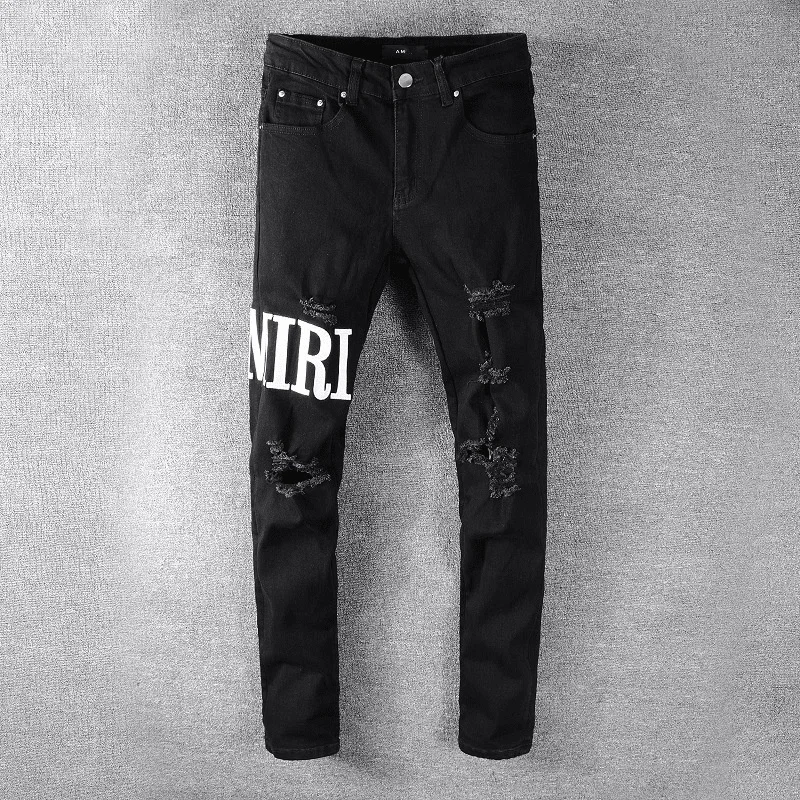 Джинсы мужские, с вышитыми буквами, рваные, зауженные, в стиле хип-хоп