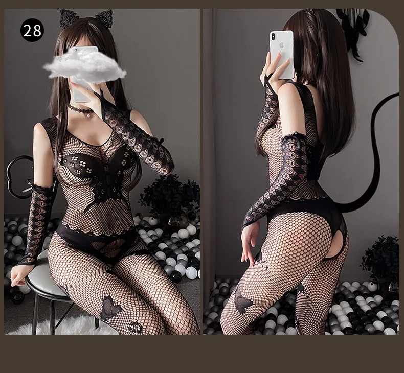 Боди в сеточку, костюм кошки, женская прозрачная сексуальная одежда с открытой промежностью, прозрачные чулки, сетчатая сетка, горячее эротическое белье