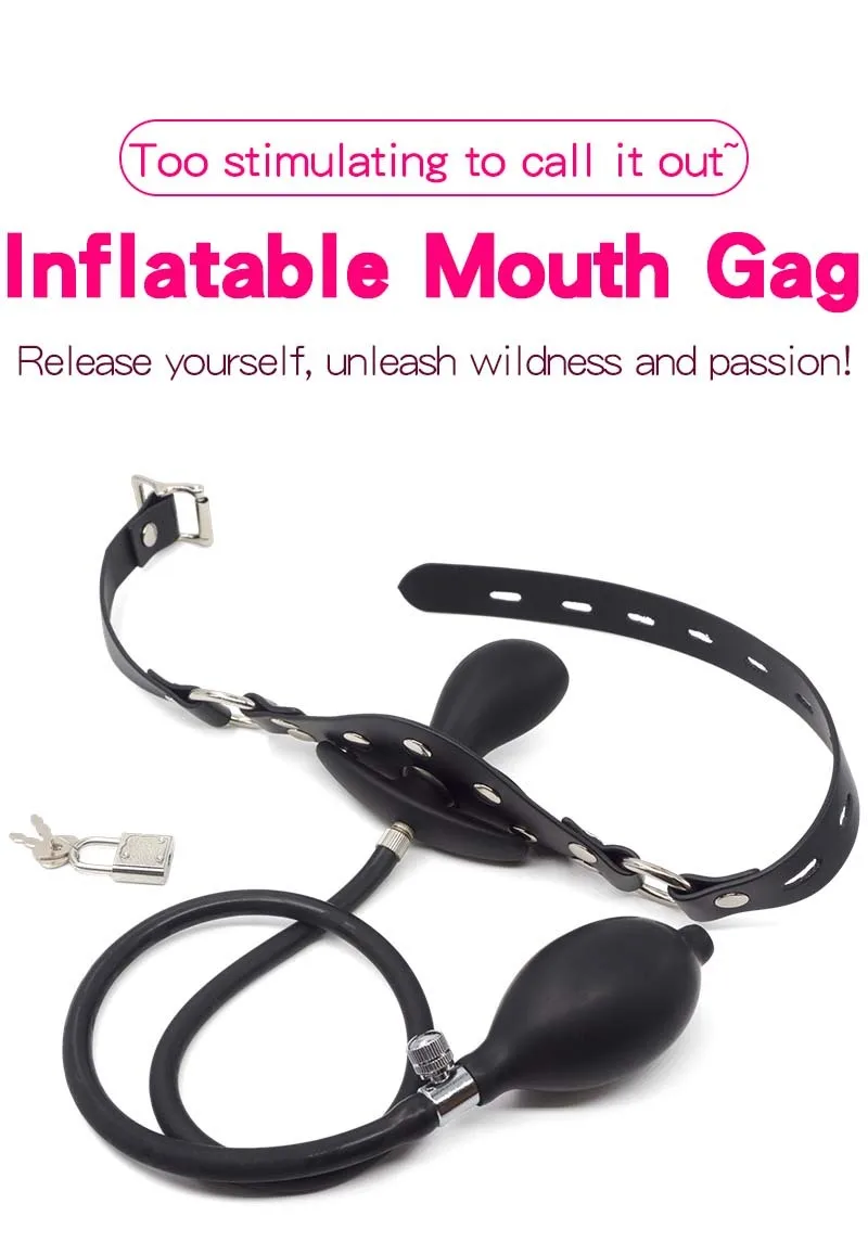 1. Надувной и регулируемый, кляп от маленького до большого, экстремальное удовольствие заставляет вас закричать, но кляп предотвращает его;