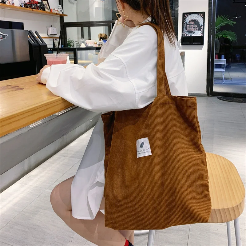 Новая женская сумка для покупок, Холщовая Сумка через плечо, женские сумки, Вельветовая Экологически чистая многоразовая Складная Сумка-тоут для хранения