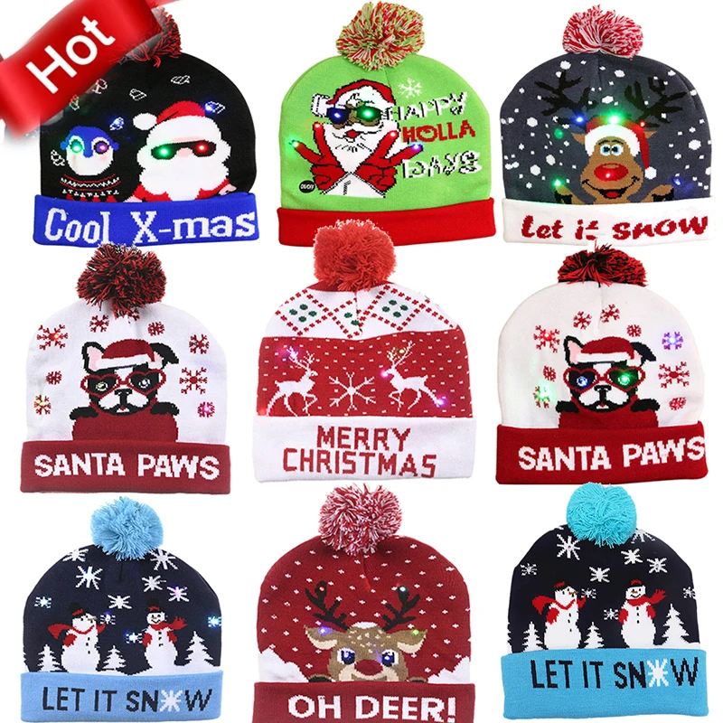 Рождественское украшение, светодиодные вязаные рождественские шапки...