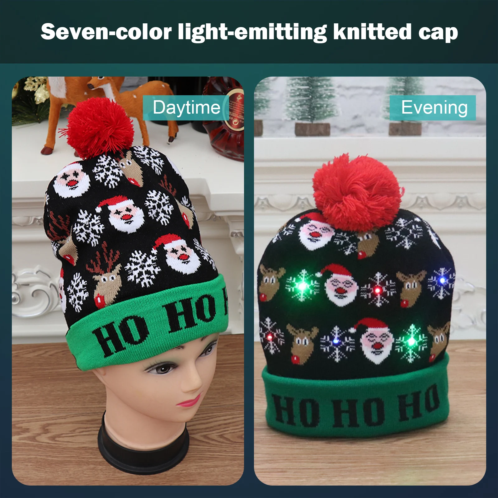 Светодиодный Рождественский вязаный головной убор-светильникКепкиЗимняя шапка унисекс с разноцветными светодиодами с 3 режимами, Рождественская шапка с мигающими огнями для праздничной вечеринки