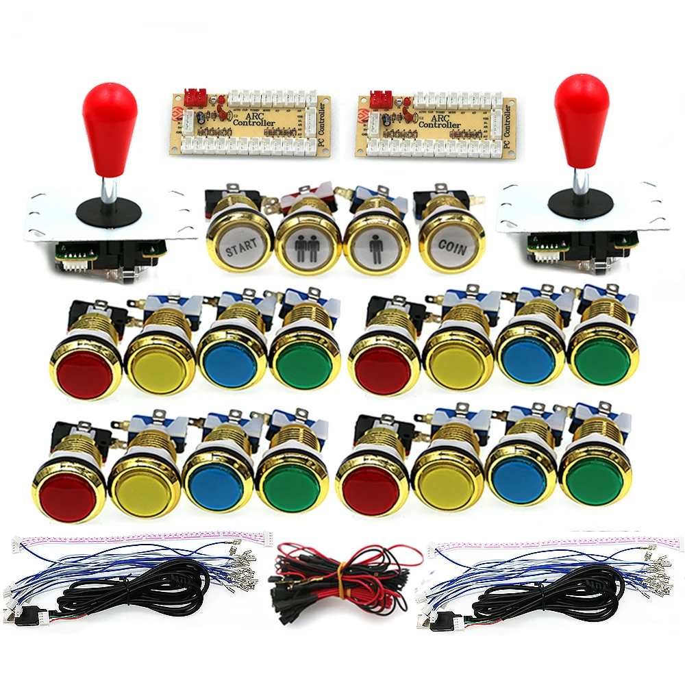 Комплект контроллера для аркадных игр сделай сам, хромированная, Золотая кнопка, копия SANWA, джойстик с нулевой задержкой, Raspberry Pi, ПК, USB-плата