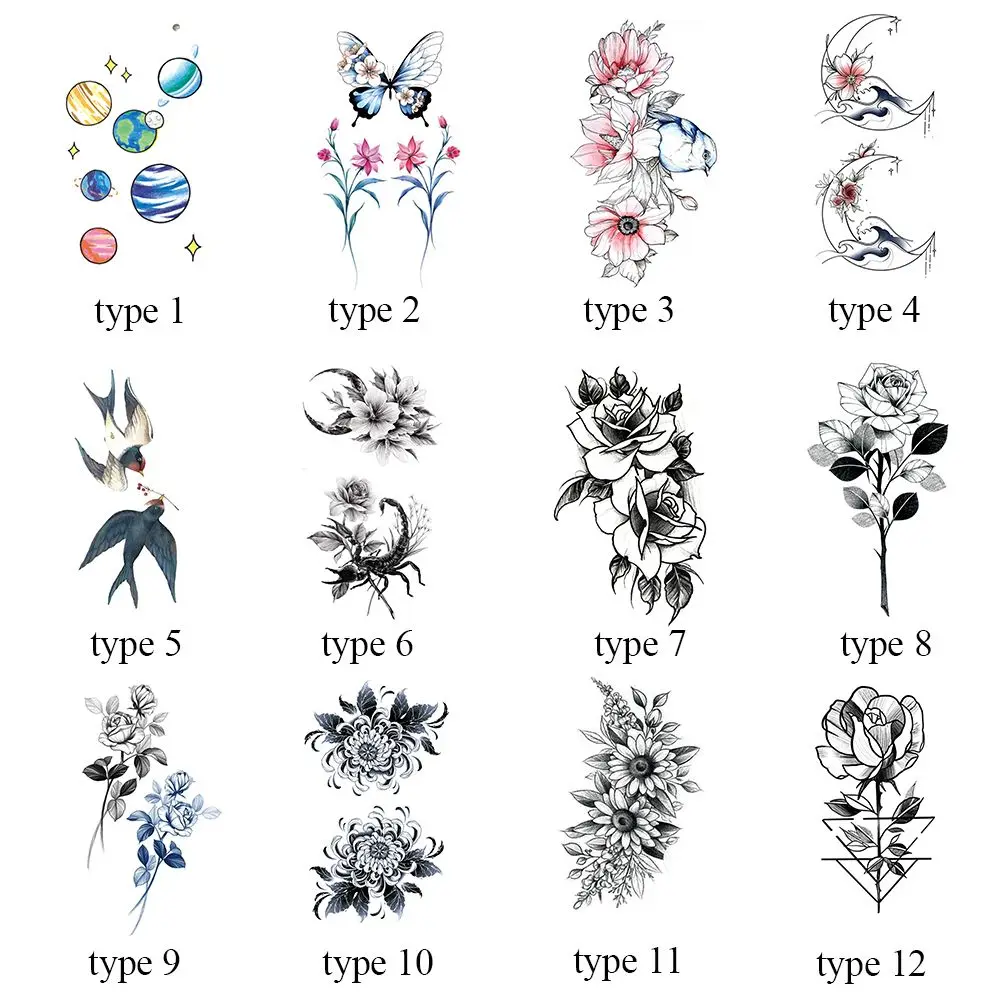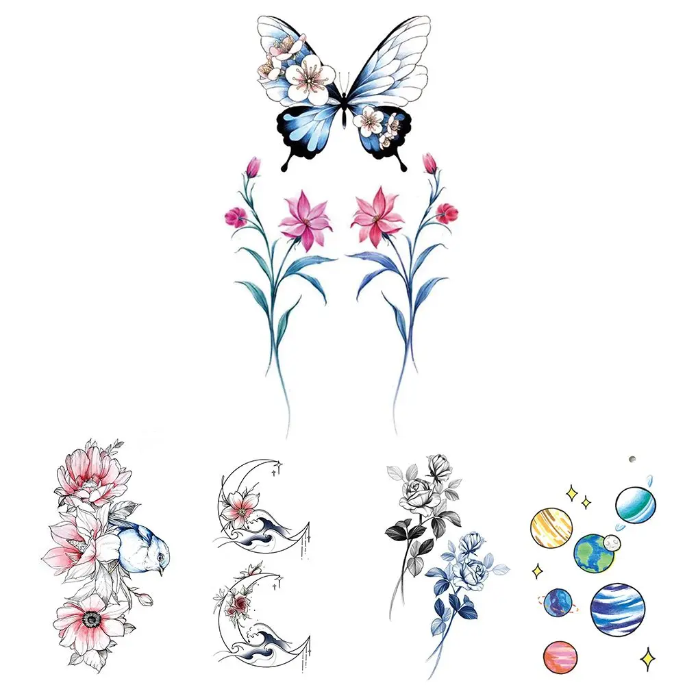 Модные водонепроницаемые тату-наклейки, Рисунок розы, бабочки, альтернативные Стикеры для тела, моющиеся временные татуировки с эффектом ненастоящей татуировки