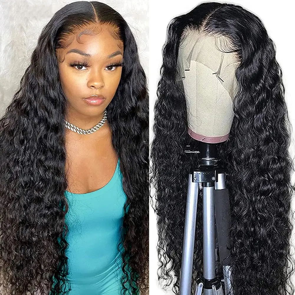 Свободный парик с глубокой волной, парики из человеческих волос на сетке спереди, парики на прозрачной сетке, T-образные парики с глубокой волной, парик из бразильских вьющихся человеческих волос