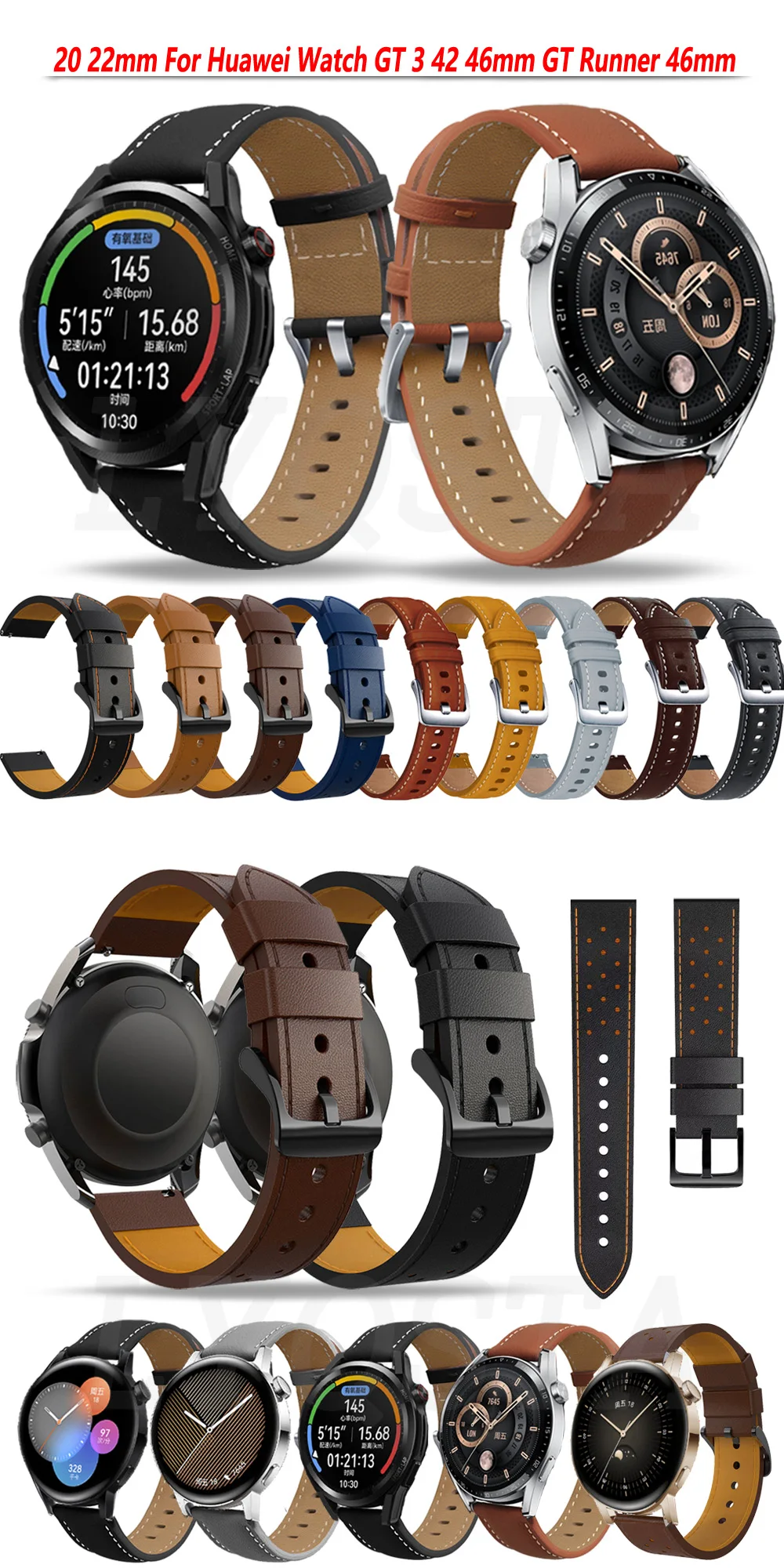 Ремешок из натуральной кожи для смарт-часов Huawei Watch GT3 42 46 ...