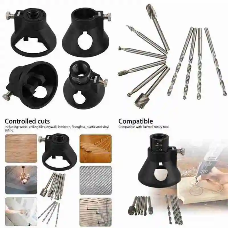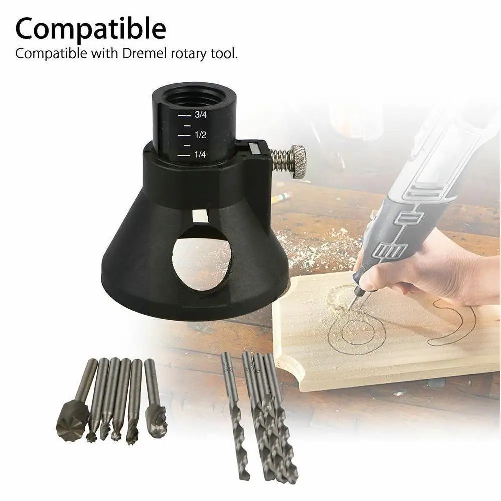 Особенности:100% новый товар высокого качества.Используется для фиксации сверла, фрезерного станка и других, сохраняет Dremel более устойчивым.Включите мясорубку, держите ее вращающейся в локаторе, шлифовальная машина может точно пробить.Легко крепится к вращающемуся инструменту.Очень безопасно, когда вы используете Dremel с ним.Жесткий и очень хорошего качества.Отличный продукт и удобный.Совместим с вращающимся инструментом Dremel.Спецификация:Набор направляющих для резкиМатериал пластик + Высокоскоростная стальВнутренний диаметр 19 ммНаружный диаметр 26 ммДиаметр преобразователя инструмента: 60 мм; Высота: 42 ммДиаметр сверла 3,175 ммФункция фиксации сверла, пылезащитныйПрименение для электрической дрели DremelПосылка включает в себя:Комплект из 7 предметов:1x направляющая для резки6x HSS Фрезерные БитыНабор из 11 предметов:1x направляющая для резкиСверло 4x6x HSS Фрезерные Биты