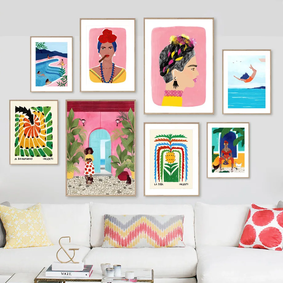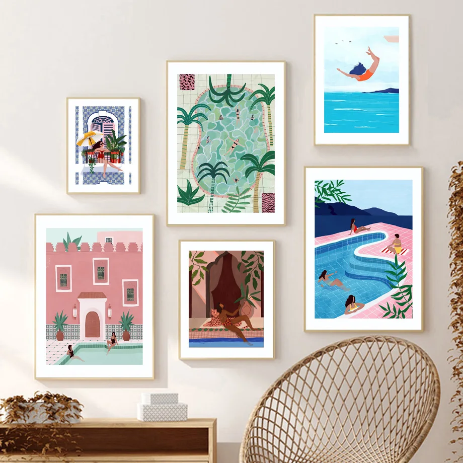 Тропическая Марокканская девушка растение бассейн абстрактный Бохо настенная Картина на холсте постеры и принты настенные картины для декора гостиной