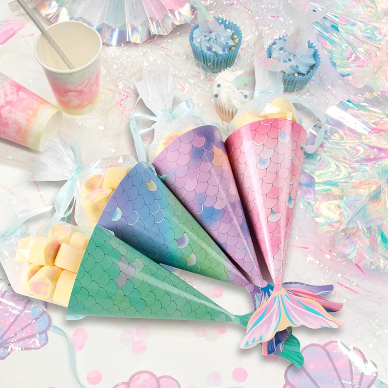 Одноразовая посуда в виде русалки, с разноцветными ракушками