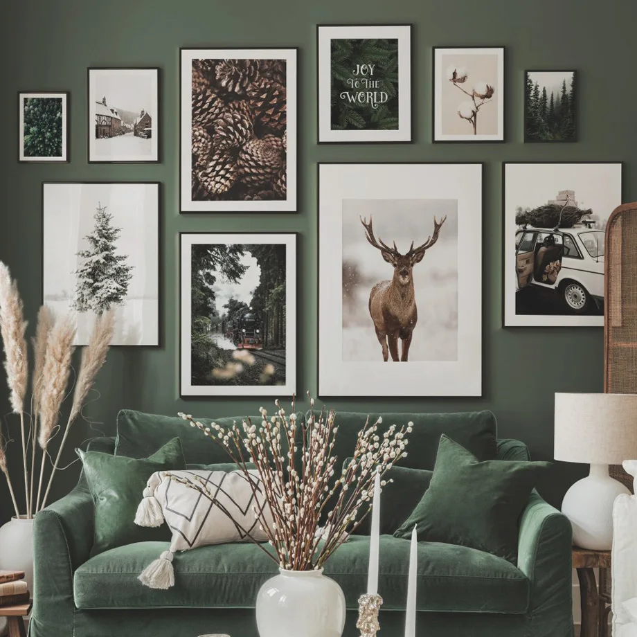Папоротник лист сосновый олень птица Рождественская настенная живоп...