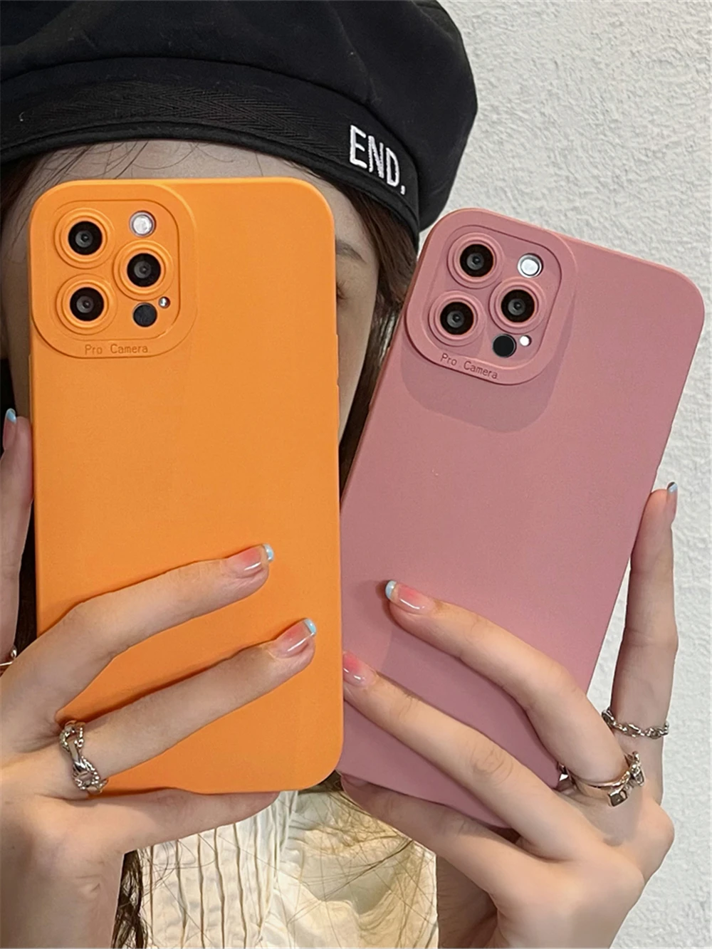 Feature1:Vitality Orange Pink Solid Color Soft Silicone Case