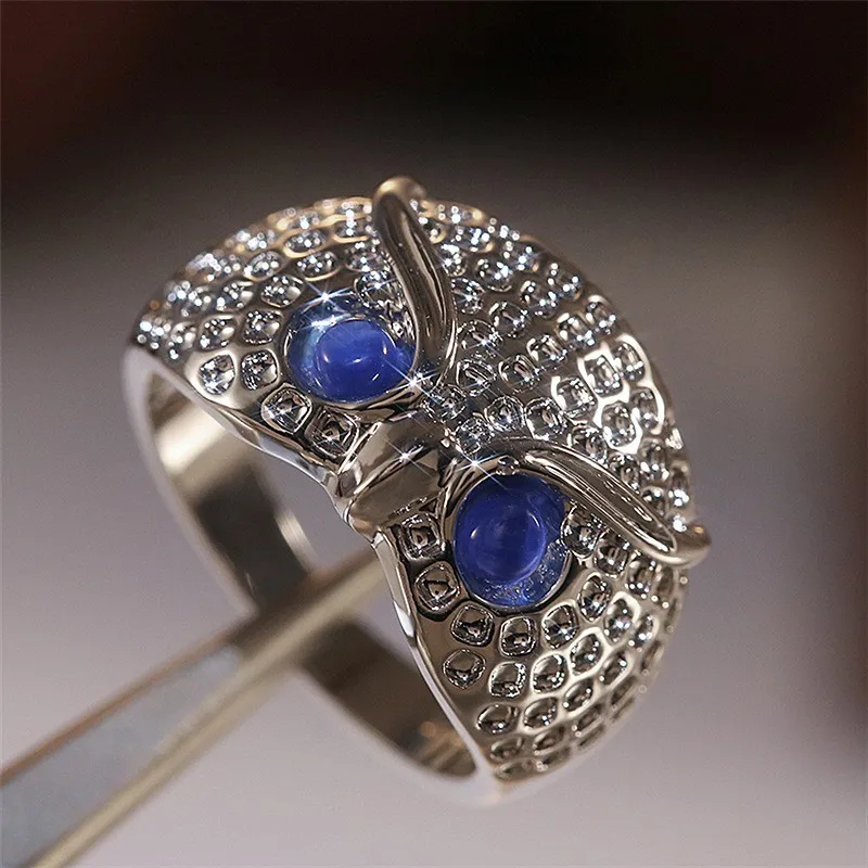 Милые стразы кольцо в виде совы с голубыми глазами в простом стиле ...