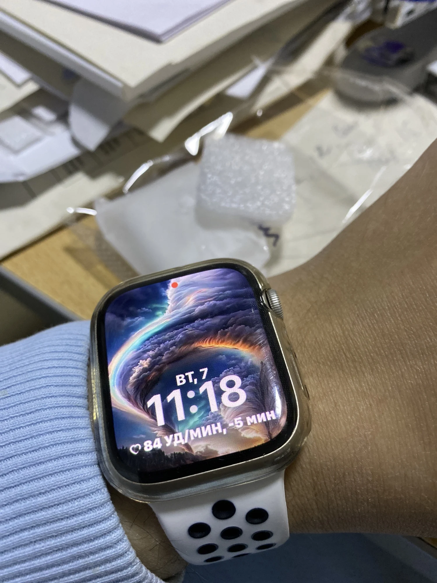 Заказываю уже не в первый раз. Этот раз заказала 2 штуки. Часы на вид не утяжеляют, можно сказать что практически не заметны, периодически меряю так как из за постоянной носки желтеют, но и то пока не снимешь с часов особо и не заметно. На сенсор экрана не влияет, отличный селикон чехлом довольна. Доставка быстрая до МО менее чуть больше 2-х недель. трек отслеживается. На фото предыдущий чехол в носке 3 месяца. И новые полученные сегодня
