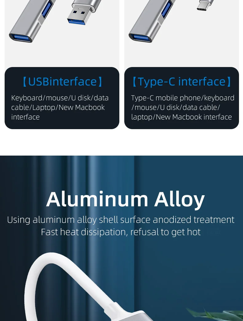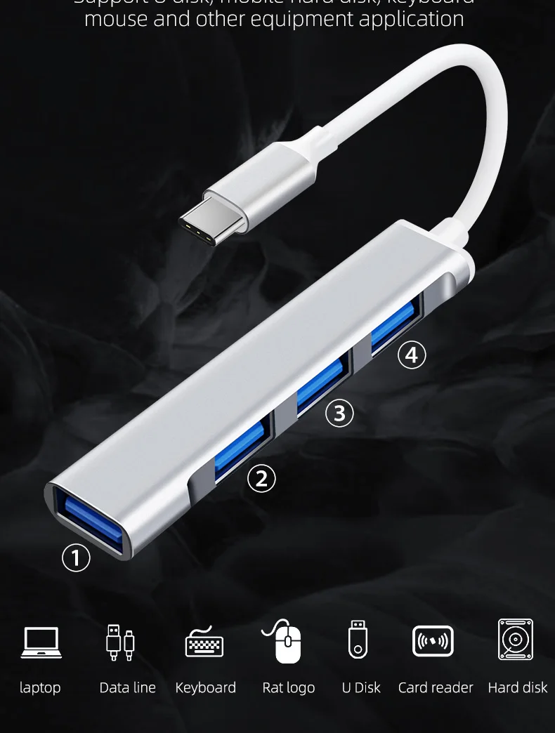 Подходит для порта type-c/USB порта компьютера и мобильный телефон расширения передачи данных, стандартная USB3.0 теория 5 Гбит/с высокоскоростной передачи, может на самом деле SUB2.0 мульти-порт расширения, такие как: мышь, соединение клавиатуры, подключение периферийного устройства, ссылка на мобильный телефон через usb-порт, разделяющий порт, такой как зарядка.