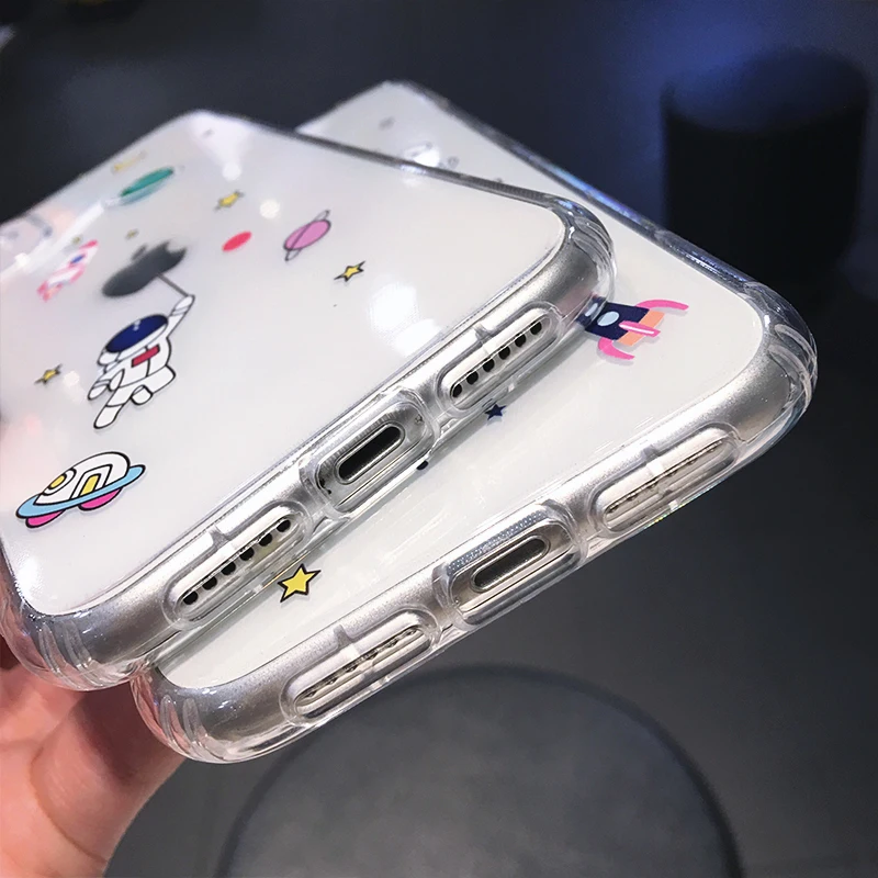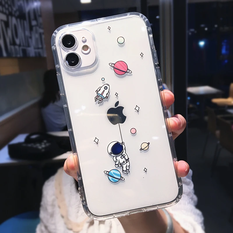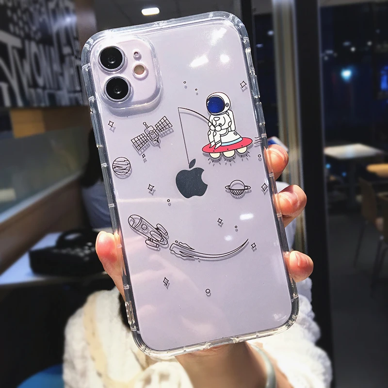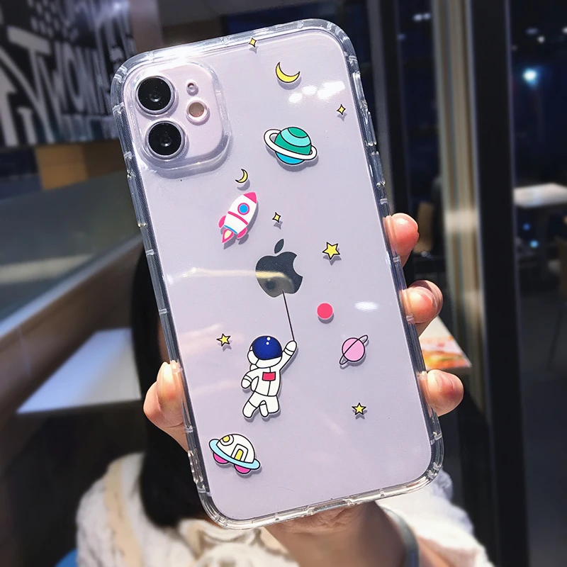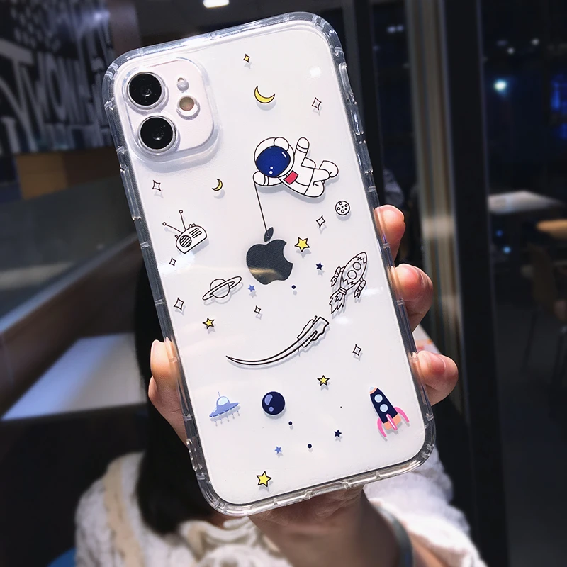 Чехол для телефона с милым мультяшным астронавтом, звездой, космосом для iPhone 12 Mini 11 Pro Max X XS XR 7 8 Plus, забавная пара, прозрачный мягкий чехол