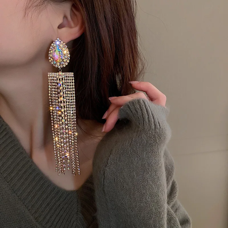 Женские длинные серьги-кисточки с кристаллами в вечерние йском и американском стиле