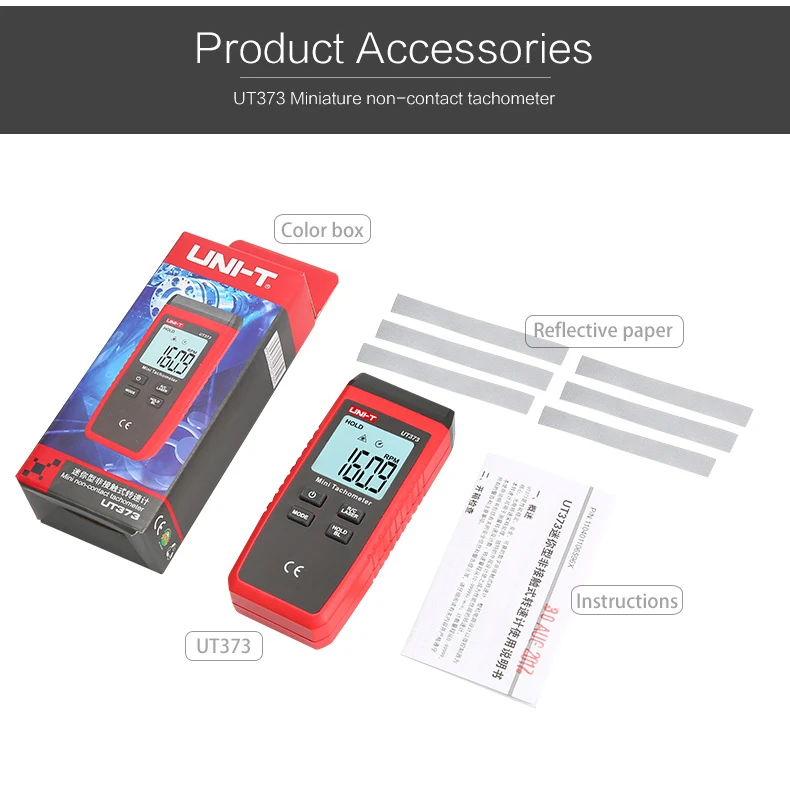 Цифровой лазерный тахометр UNI-T UT373, Бесконтактный мини-тахометр...