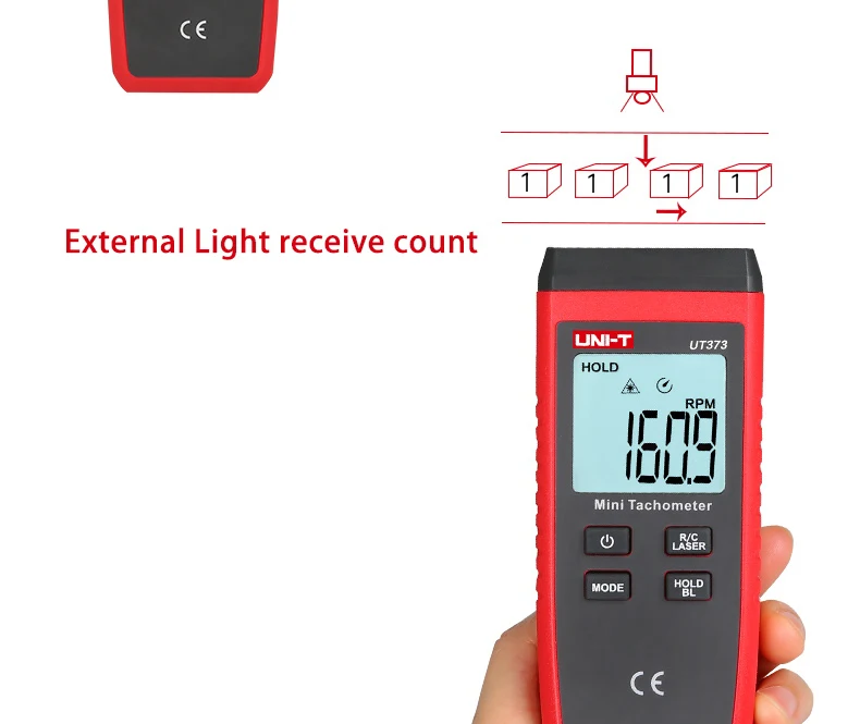 Компактный цифровой лазерный тахометр UNI-T UT373, Бесконтактный тахометр, диапазон оборотов в минуту 10-99999 ОБмин, тахометр, одометр, кмч подсветка