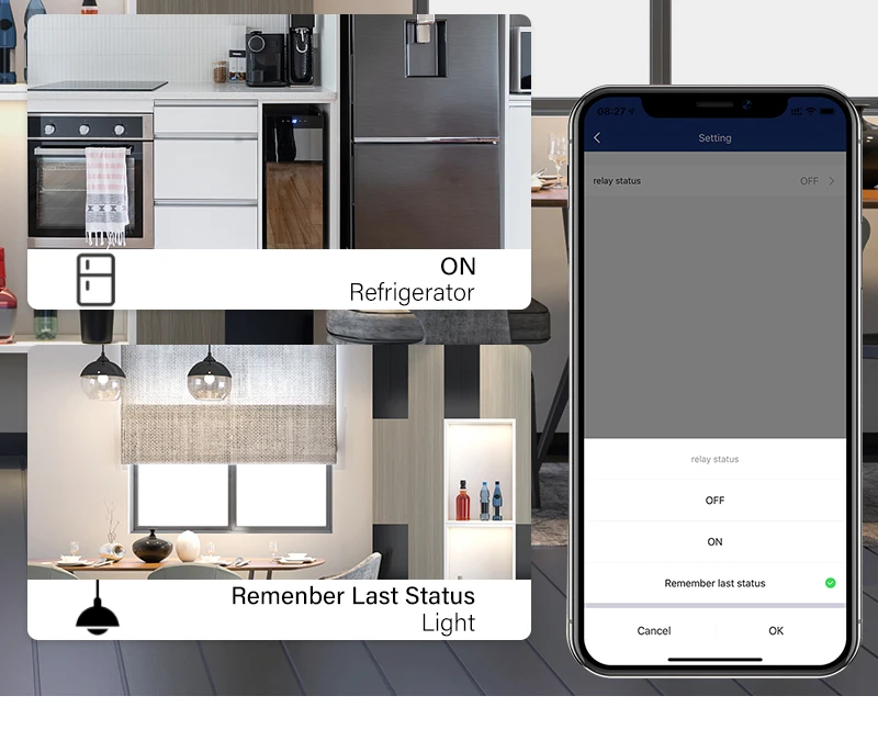 Управляйте включением и выключением устройства, синхронизацией, обратным отсчетом и другими функциями через мобильный телефон. Пока мобильный телефон имеет сеть, модуль переключателя дома можно контролировать по всему миру.