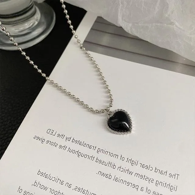 Ожерелье с черным сердцем Kpop, французская металлическая цепочка до ключиц Love, Корейская простая Женская Короткая подвеска, кружевная женская короткая Подвеска для женщин