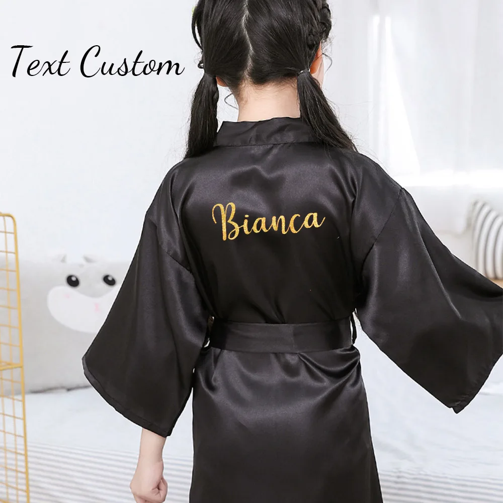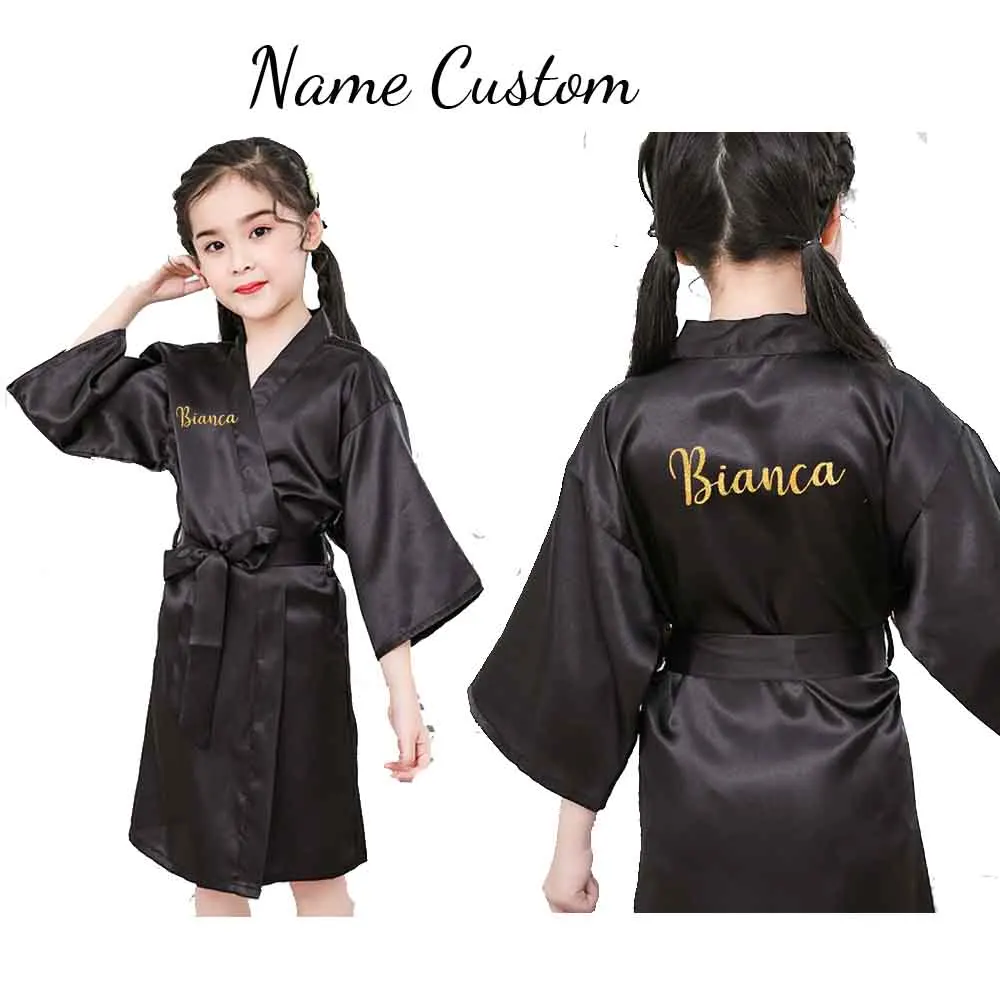 Банный халат с логотипом на заказ, атласный банный халат для мальчиков и девочек, интимное нижнее белье, шелковая пижама для невесты, повседневный подарок на свадьбу