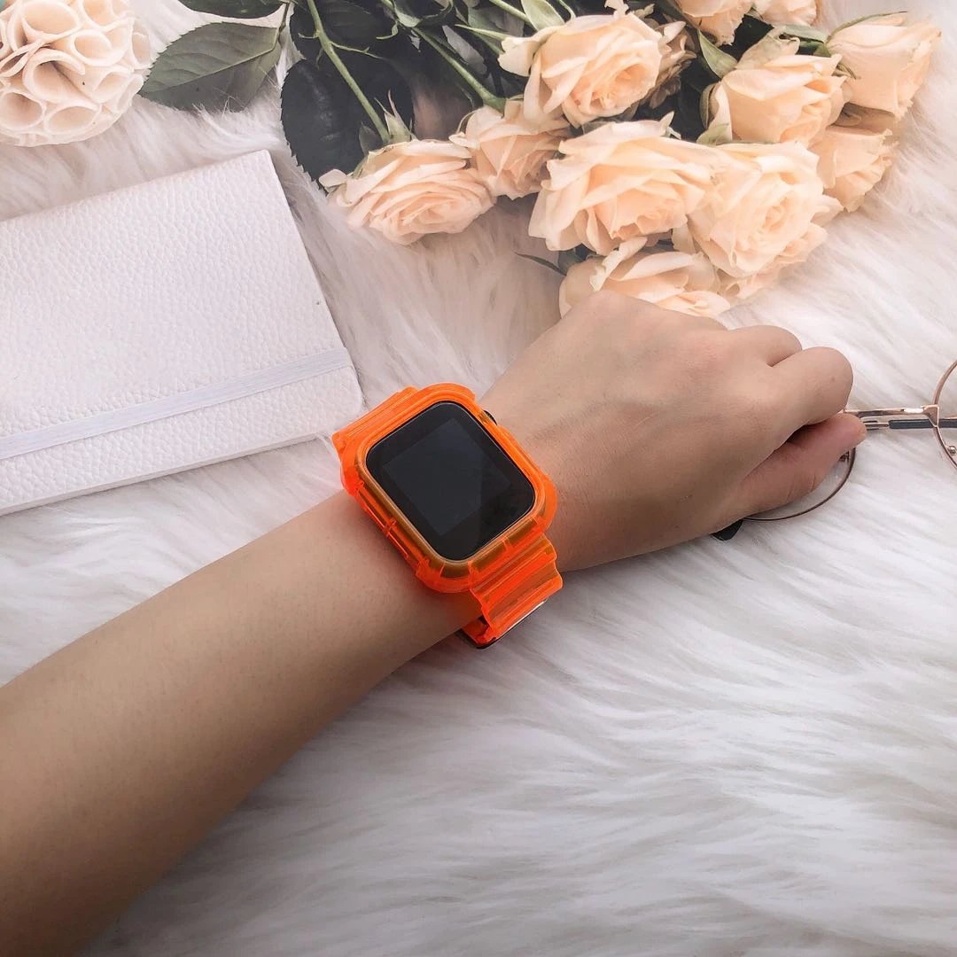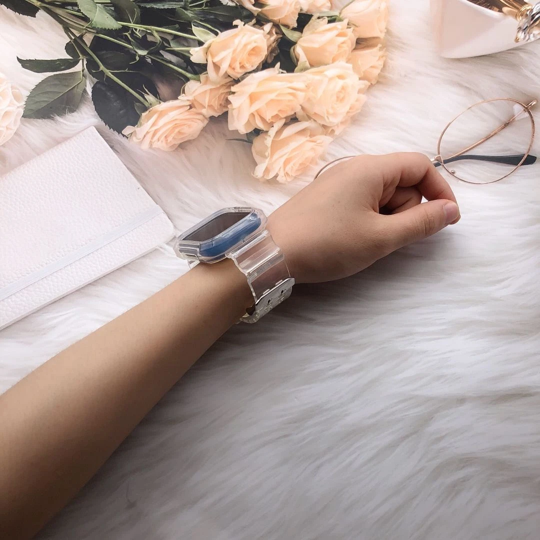 Чехол + ремешок для Apple Watch Band 42 мм 38 мм аксессуары мягкий силиконовый прозрачный браслет iWatch series 5 4 3 6 se 44 мм 40 мм