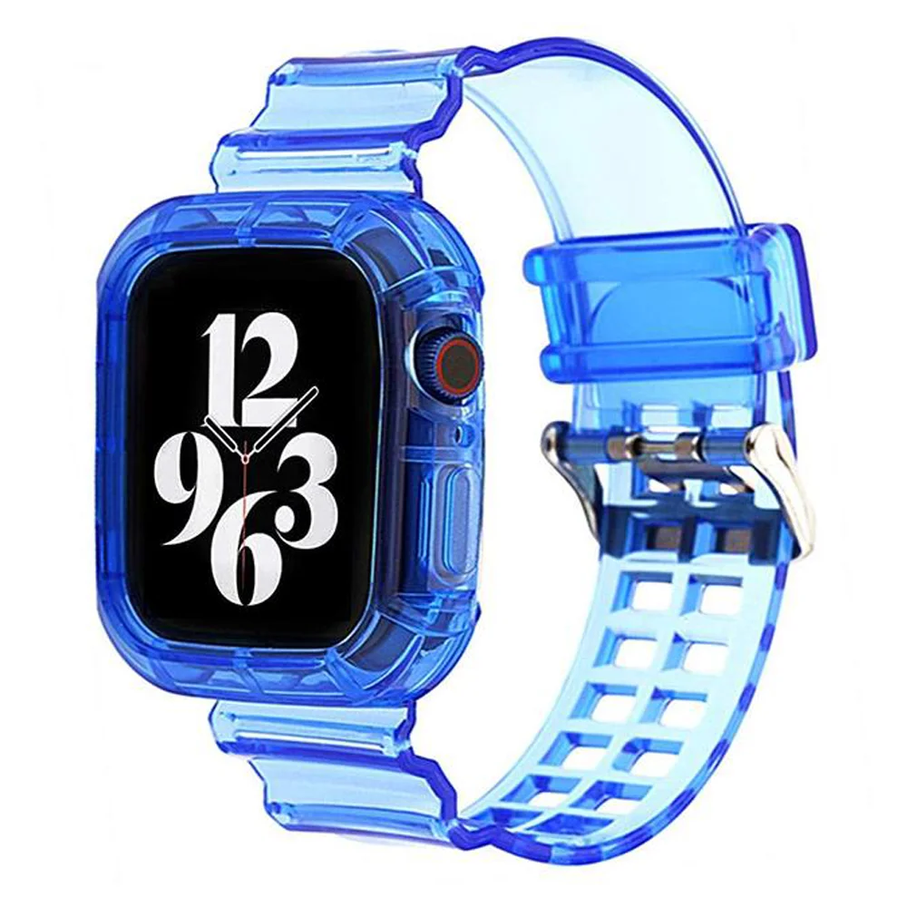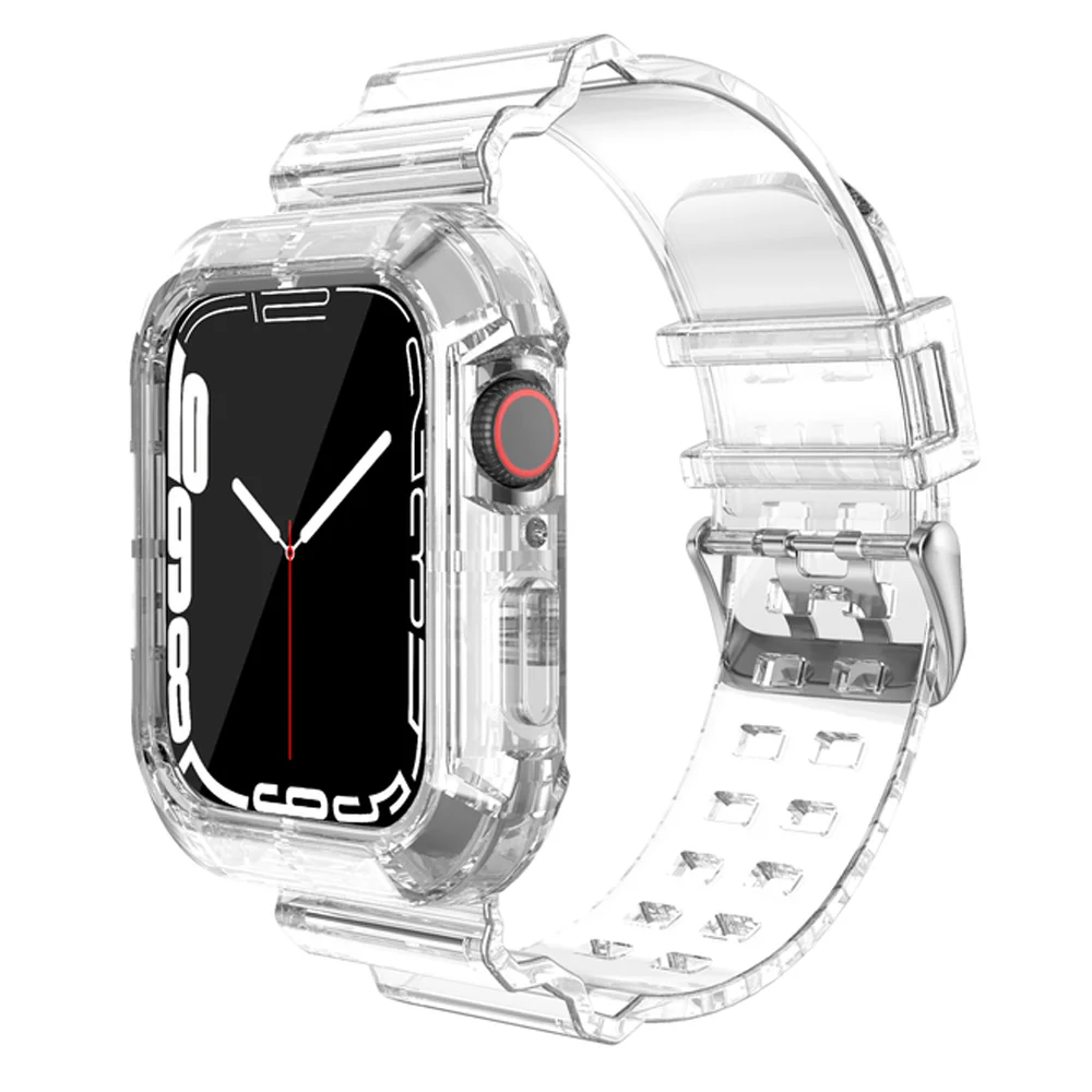 Прозрачный ремешок для Apple Watch Band 38 мм 40 мм 42 мм 44 мм, силиконовый браслет, чехол для iWatch series 7 SE 6 5 4 3 45 мм 41 мм