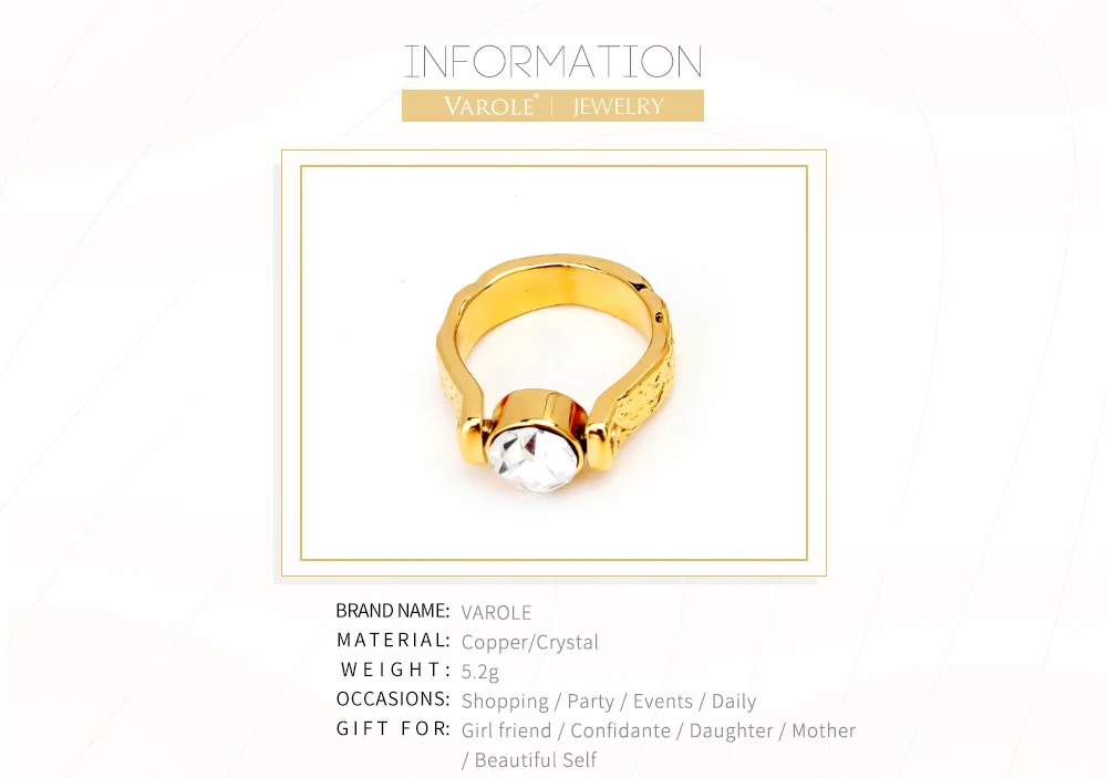 Большое Сверкающее кольцо VAROLE с кристаллами для женщин, Винтажное кольцо золотого цвета, модные ювелирные изделия, подарок для друзей, Женское кольцо, оптовая продажа