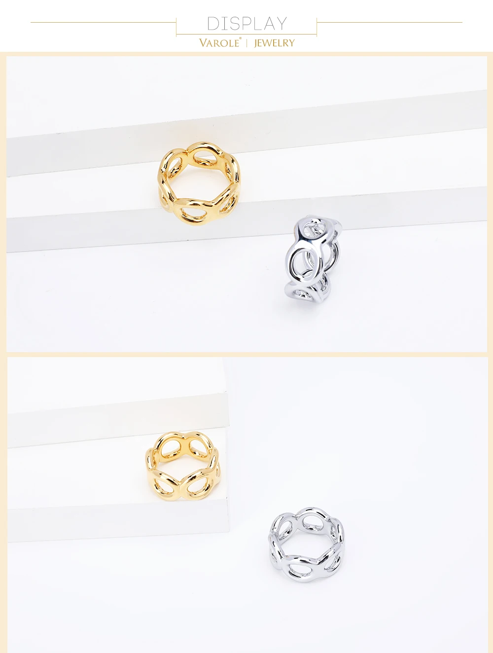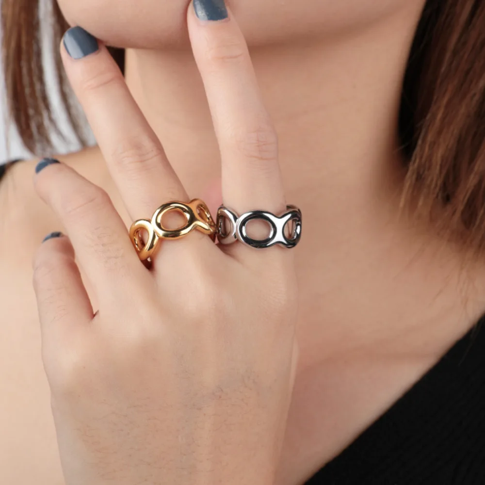 VAROLE Панк Полые поворотные кольца для женщин золотого цвета кольц...