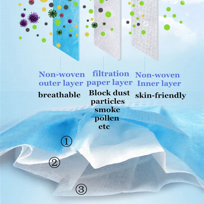 Одноразовая маска 3 слоя ежедневноПараметры продукта:Материал: трехслойная Нетканая ткань + расплавленная ткань + Нетканая тканьПодходящий сезон: Весна, Осень, Зима, ЛетоЦвет: синий, белый, черный, розовый, фиолетовый, зеленый, желтый, оранжевый, красный, серыйСтиль маски: тип ушной петлиРазмеры: около 17*9,5 смОсобенности продукта:1. Новая ткань PP Нетканая ткань, мягкая и чистая, удобная и дышащая2. Процесс бесшовной вязки3. Три раза дизайн, больше дышащего пространства на лице4. Пластиковая полоска для носа, алюминиево-пластиковая полоска для носа,5. Многослойная защита для вашего дыхательного здоровьяКак носить маску:1. Закройте рот и нос и Повесьте два боковых ремня на уши2. Фиксация моста носа в соответствии с формой носа предотвращает загрязнения воздуха от входа.3. Пожалуйста, потяните маску к нижней челюсти, чтобы немедленно предоставить трехмерное дышащее пространство.Пожалуйста, обратите внимание, что указанный Товар производится и распространяется за рубежом и в соответствии с законодательством страны его происхождения