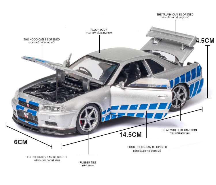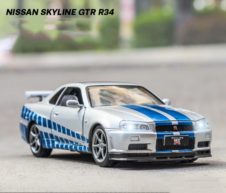 Модель спортивного автомобиля NISSAN GTR R34 из сплава 1:32, Литые ...