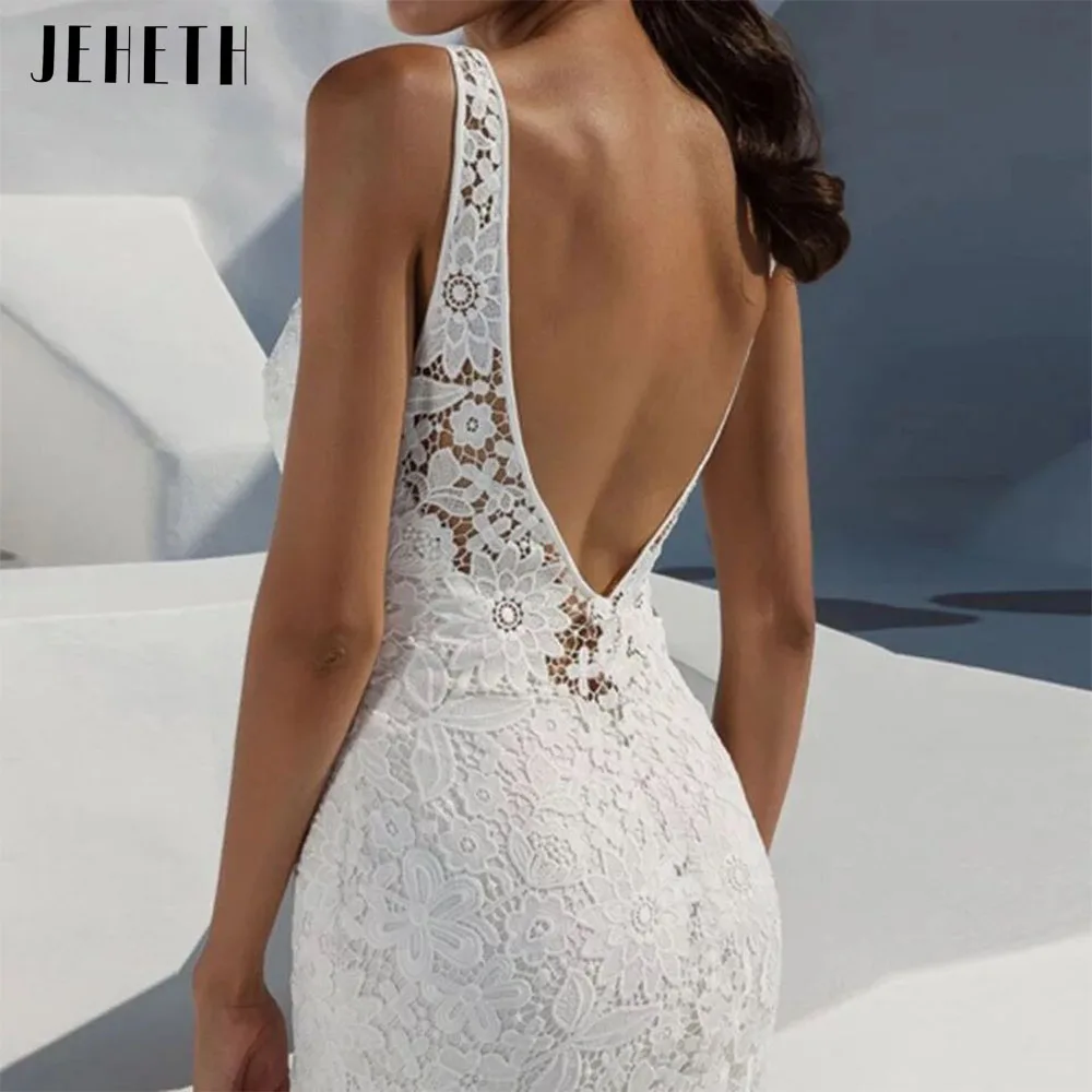 Женское кружевное платье-Русалка JEHETH, длинное вечернее платье до пола с V-образным вырезом и открытой спиной, в стиле бохо, для свадьбы