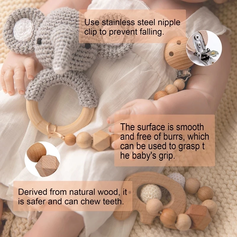 Игрушки для новорожденных, 1 шт., деревянный прорезыватель, вязаный...