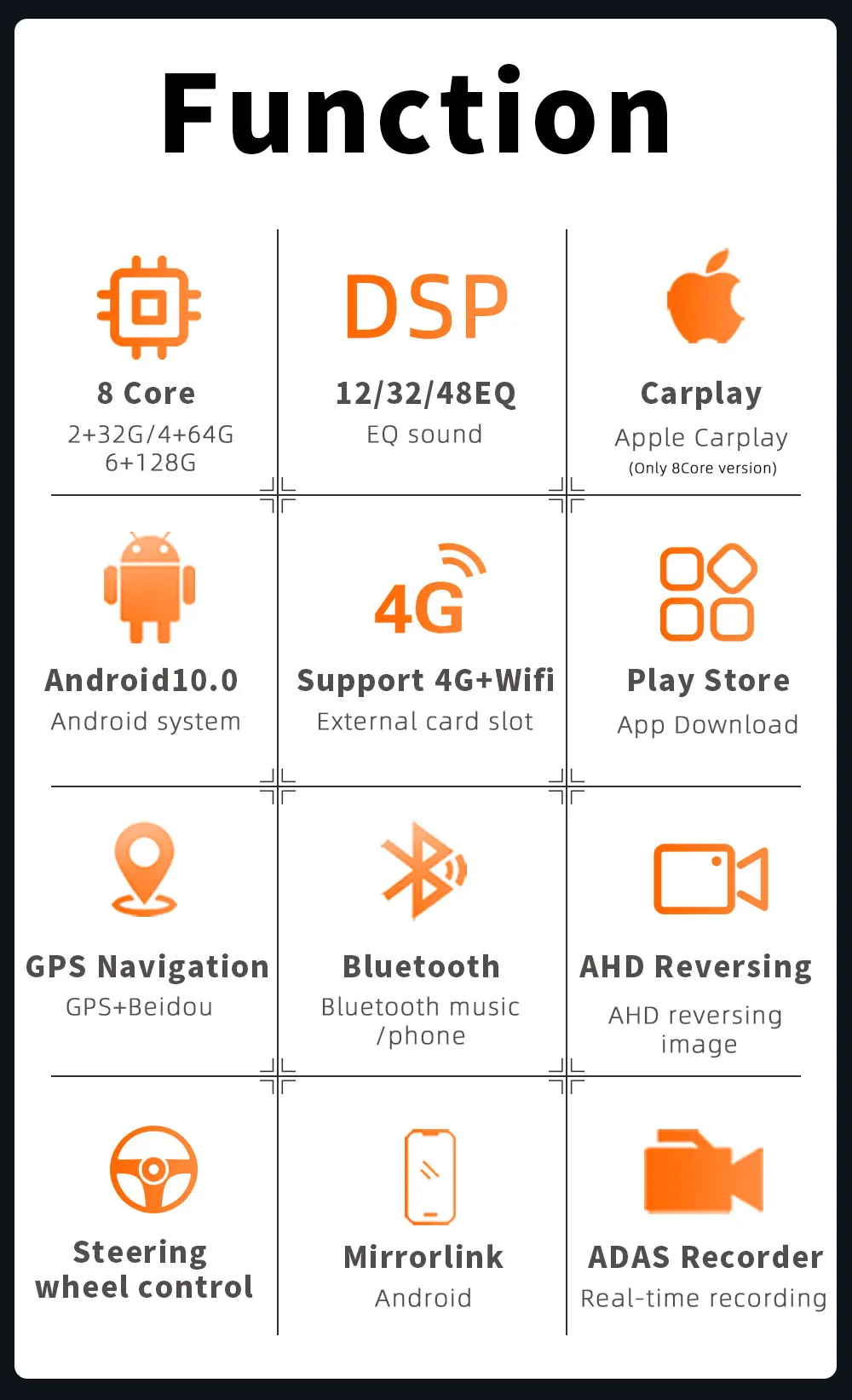 Поддержка подключения к iPhone через точку доступа Wi-Fi, поддержка подключения к телефону Android через usb-кабель и точку доступа Wi-Fi, фотографии телефонов, музыку, видео, навигация и т. д. будет отображаться на android-плеере