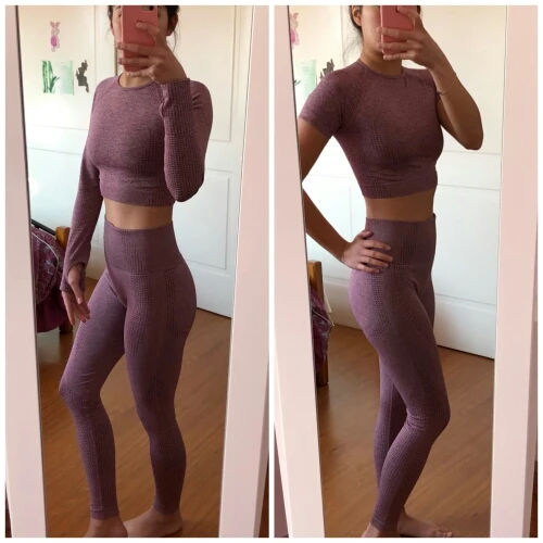 Женский бесшовный комплект для йоги, спортивная одежда для тренировок, одежда для спортзала, укороченный топ с длинным рукавом, леггинсы с высокой талией, спортивные костюмы, 2 шт.