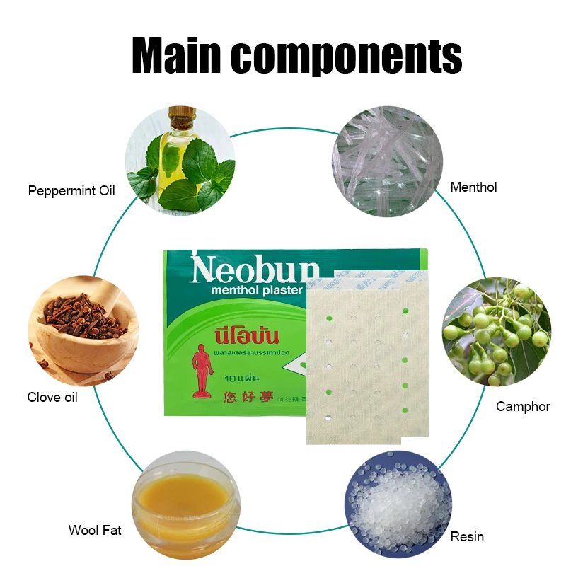 10 шт.уп. таиландский противовоспалительный обезболивающий пластырь Neobun для лечения боли в мышцах, ревматизма, обезболивающий пластырь