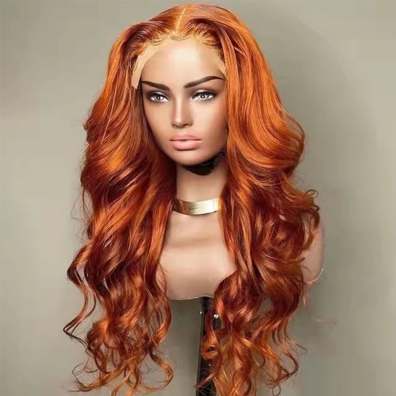 Имбирный Оранжевый плотность 180% 26 дюймов длинные волнистые синтетические парики на сетке спереди парик для чернокожих женщин ежедневный Косплей термостойкий