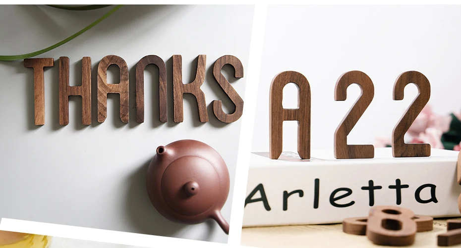 Буквы из черного ореха в скандинавском стиле, декоративные цифры, к...