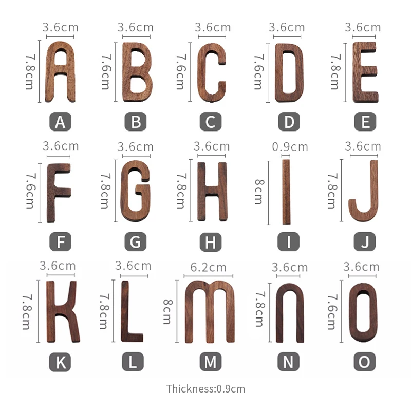 Деревянные буквы алфавита из черного ореха, деревянный настенный Де...