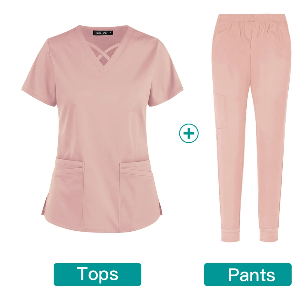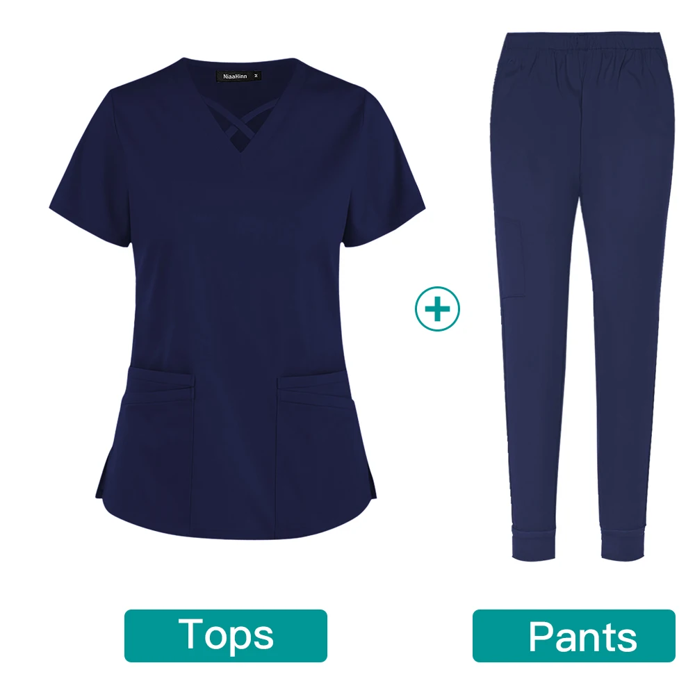 Медицинская униформа для женщин, больницы, медсестры, топы, брюки, униформа для дантиста, не липкая, стрейчевая ткань для волос, унисекс