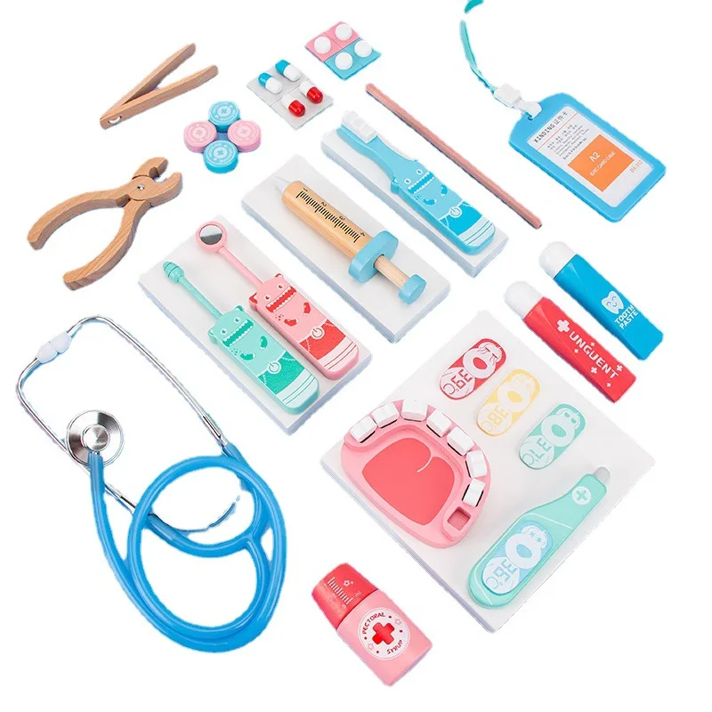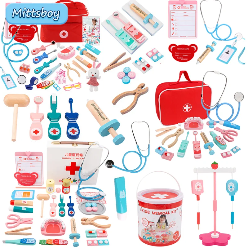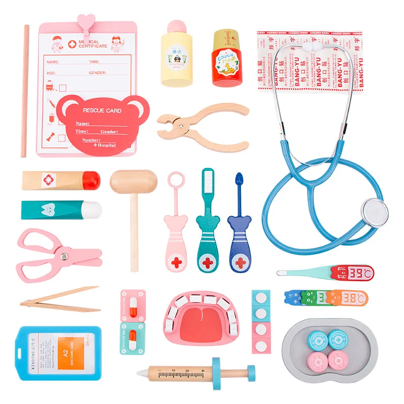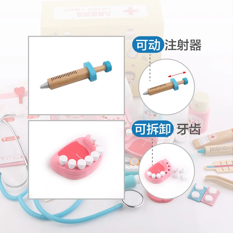 Детская имитация врача, деревянная 3D медицинская коробка, стетоскоп Монтессори, термометр, игрушка для игрового домика, обучающая игрушка, подарок для детей