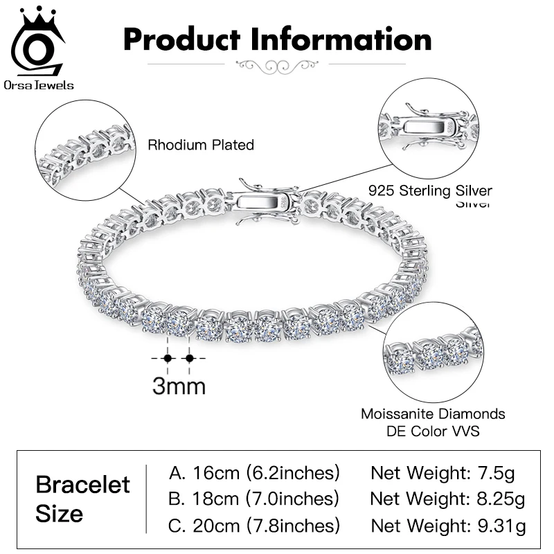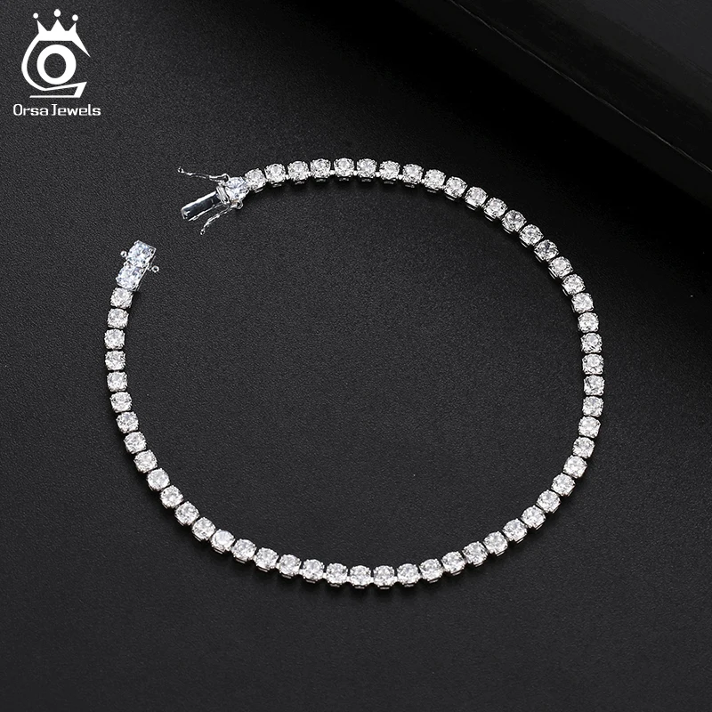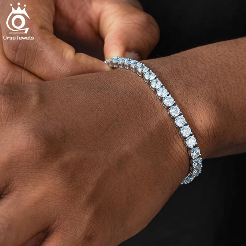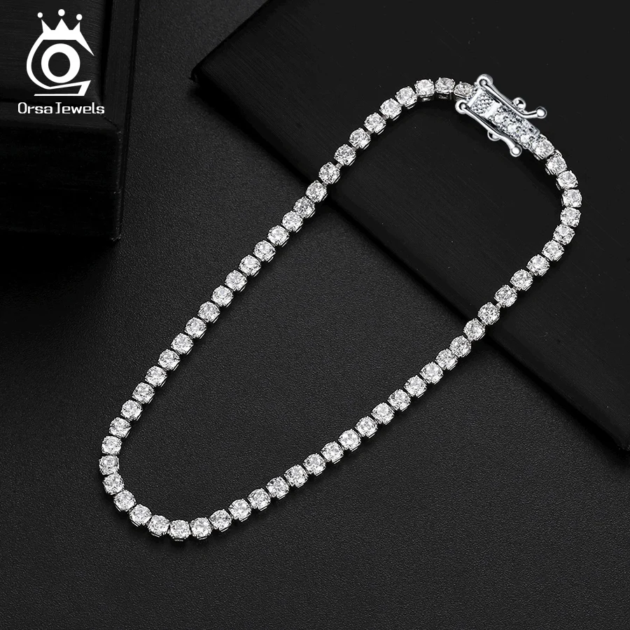 ORSA JEWELS 3 мм настоящий D Цвет Moissanite Теннисный браслет пройти Алмазный тестер GRA Сертифицированный 925 пробы серебряный браслет SMB06-3