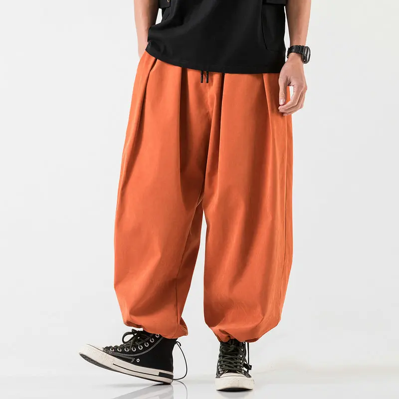 Шаровары мужские с кулиской, мешковатые брюки для бега, штаны с шир...