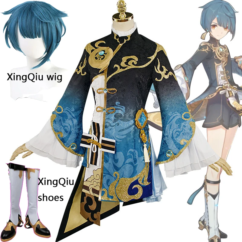 Костюм для косплея аниме геншин ударт XingQiu, костюм для косплея Xing Qiu, одежда, обувь, серьги, парик, косплей, костюм на Хэллоуин для женщин и девочек