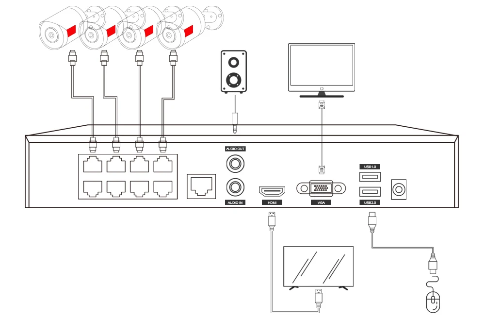 Питание через Ethernet означает, что ip-камеры подключаются к NVR с помощью одного кабеля, который передает как данные, так и мощность, нет необходимости подключать кабель питания, снизить риск утечки электроэнергии и легко настроить. Это в буквальном порядке упрощает установку и снижает затраты.