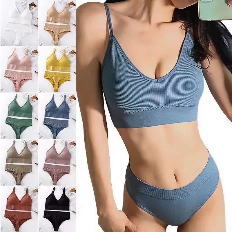Комплект женского спортивного нижнего белья CHRLEISURE из 2 предметов: бесшовный бюстгальтер и трусики-стринги