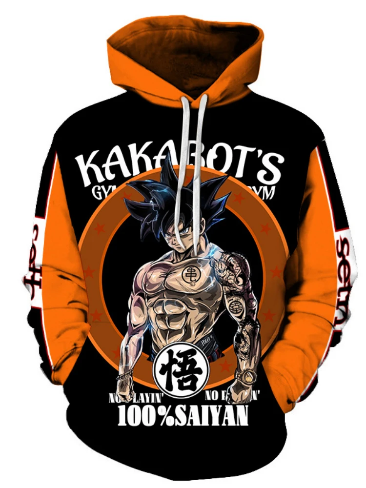 Толстовка мужская с 3D-принтом, повседневная кофта оверсайз с круглым вырезом, Сон Гоку, драконий, Свитшот
