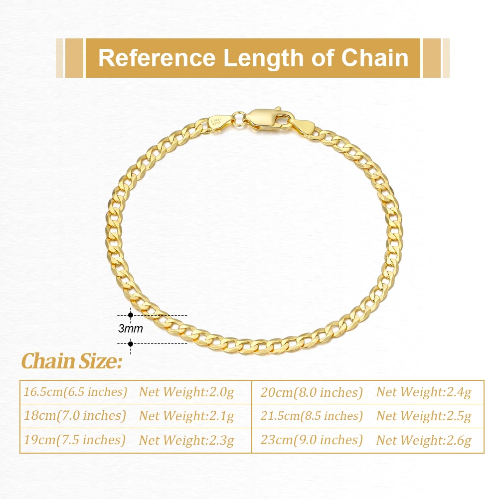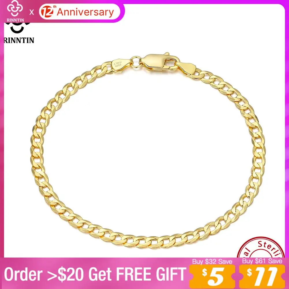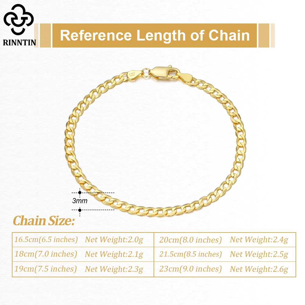 Rinntin, серебро 925 пробы, 3 мм, с бриллиантами, кубинская цепочка, браслет для мужчин и женщин, серебряная цепочка, браслет, ювелирное изделие, SB123