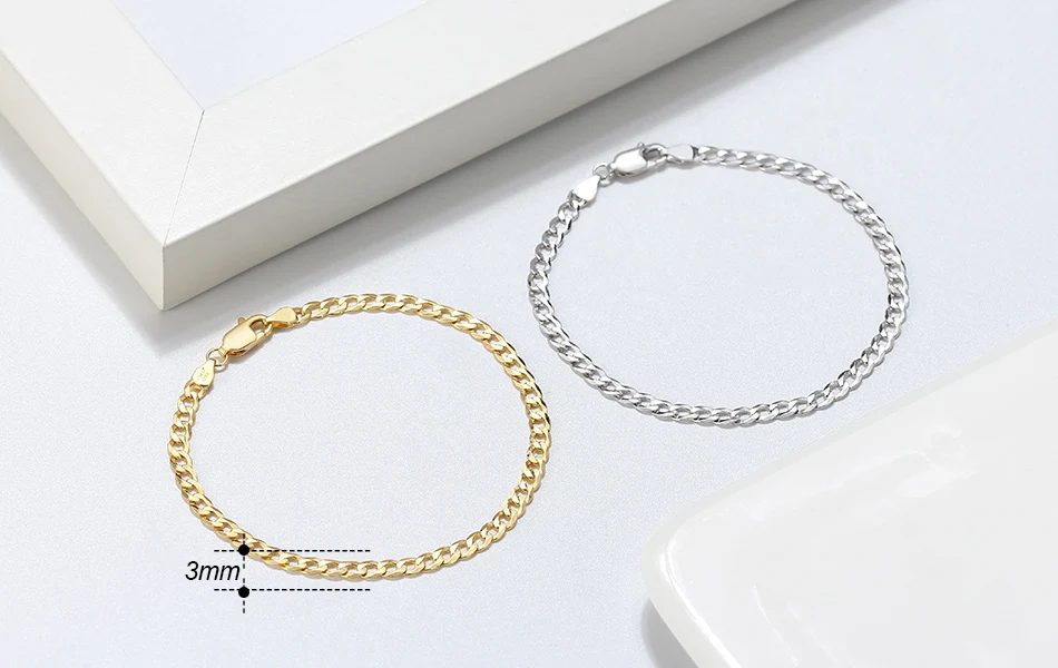 Браслет-цепочка унисекс из серебра 925 пробы, 3 мм
